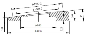 4)用同樣厚度鋼板替下密封圈,車壓環(huán)、蝶板各錐面至圖紙尺寸;