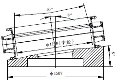 三偏心金屬硬密封蝶閥的密封面是斜錐面,閥體密封圈(圖1)與蝶板組合件密封圈(圖2)的接觸為面接觸,其工作原理是靠驅(qū)動裝置扭力直接帶動蝶板組合件,使蝶板組合件密封圈與閥體密封圈充分接觸后產(chǎn)生彈性變形而密封。三偏心金屬硬密封蝶閥作為一種高性能閥門,具有耐腐蝕性好、密封可靠、開啟力矩小等優(yōu)點。三偏心硬密封電動蝶閥DN1200,其中閥體密封圈材料為1Cr18Ni9Ti,蝶板組合件密封圈材料為復(fù)合的不銹鋼板與石棉板夾層組合件,閥體密封圈與蝶板組合件密封圈的加工質(zhì)量直接決定蝶閥密封性能。