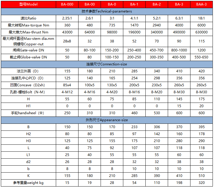 該系列是一款多回轉驅動裝置,適用閘閥、截止閥、輸出與閥門閥桿以螺母形式配合(螺母分:銅螺母,球墨螺母等),產品共有7種。