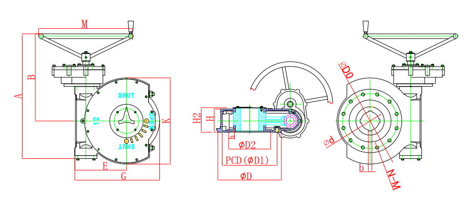 該系列是直齒輪箱與蝸輪箱對(duì)接組合成為二級(jí)傳動(dòng)蝸輪減速增壓機(jī)構(gòu),提高了機(jī)械總效率,輸入小力矩,開動(dòng)大閥門,使操作人員省力,每種型號(hào)提供多個(gè)傳動(dòng)比,能更好的匹配不同規(guī)格的閥門。